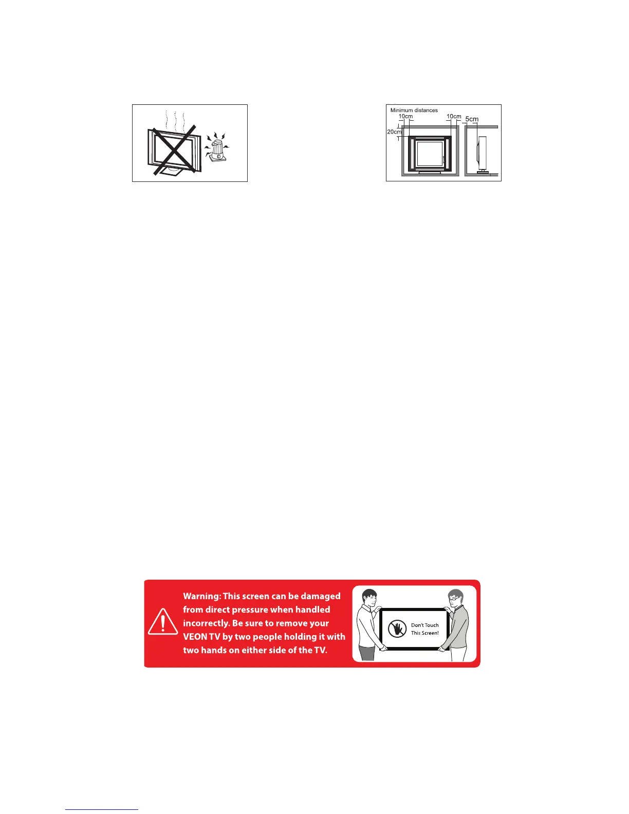 • Do not apply any pressure directly on the front screen of the TV, the LCD screen