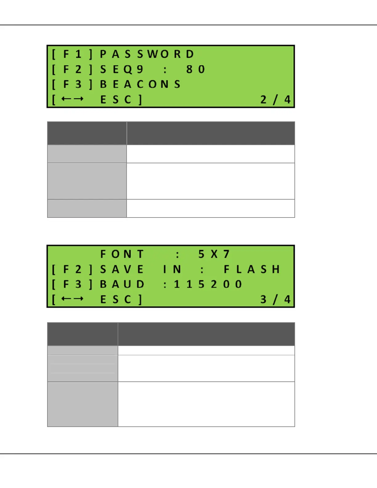 Table 11 – Configuration Menu Screen 2/4