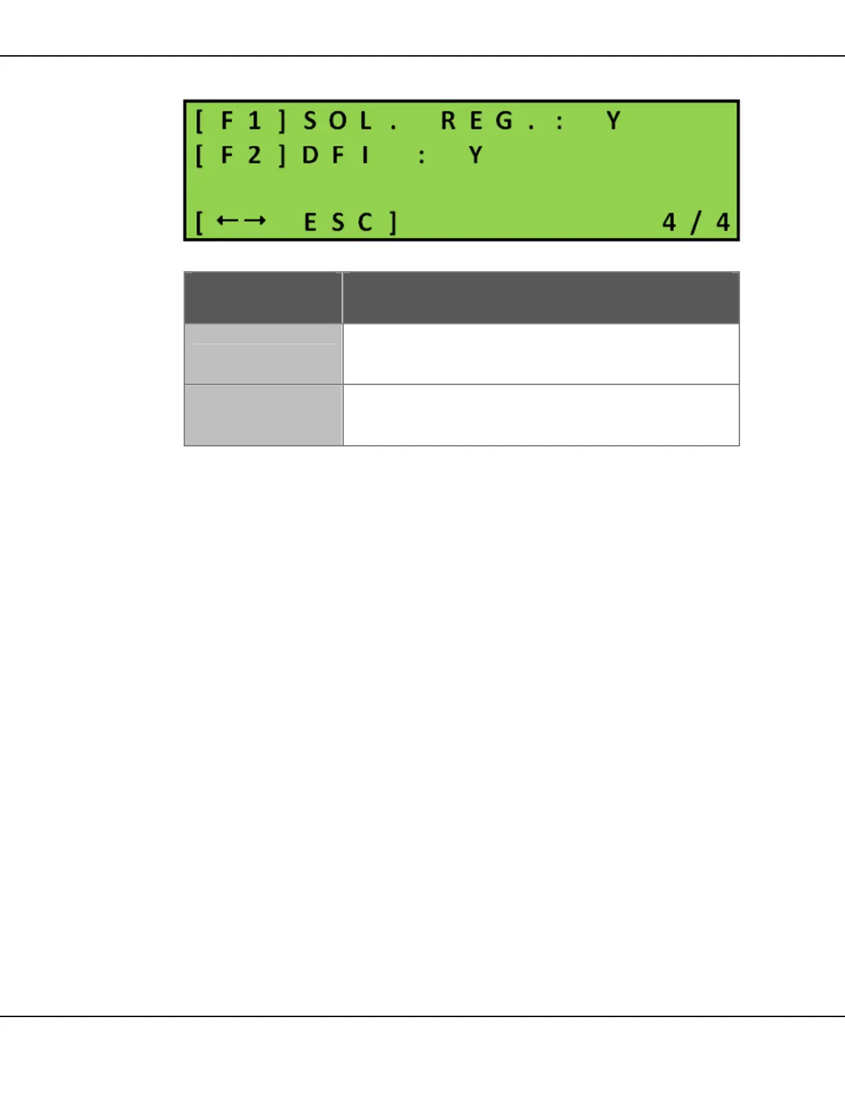 Table 13 – Configuration Menu Screen 4/4