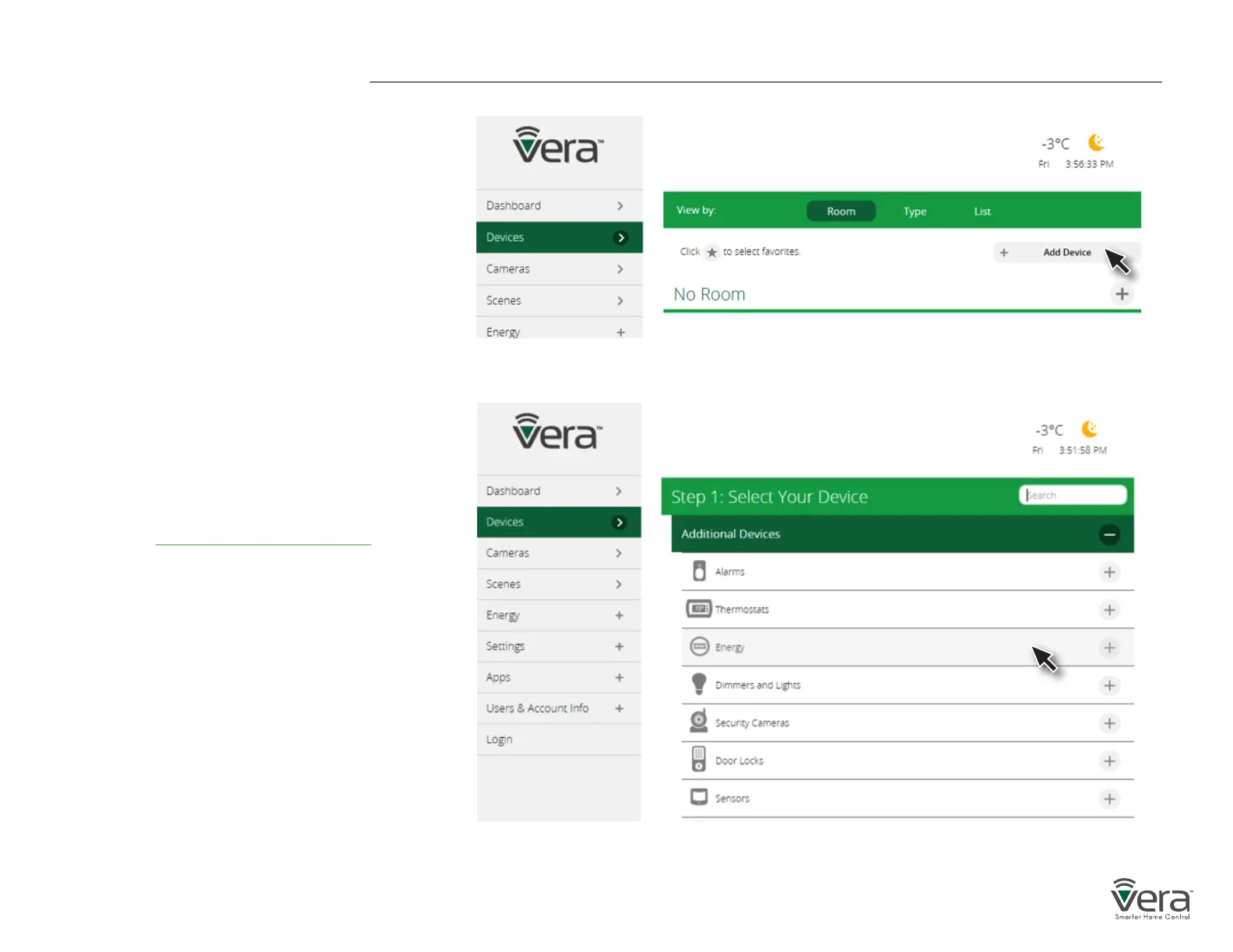 VeraPlus Controller, use the Vera UI to