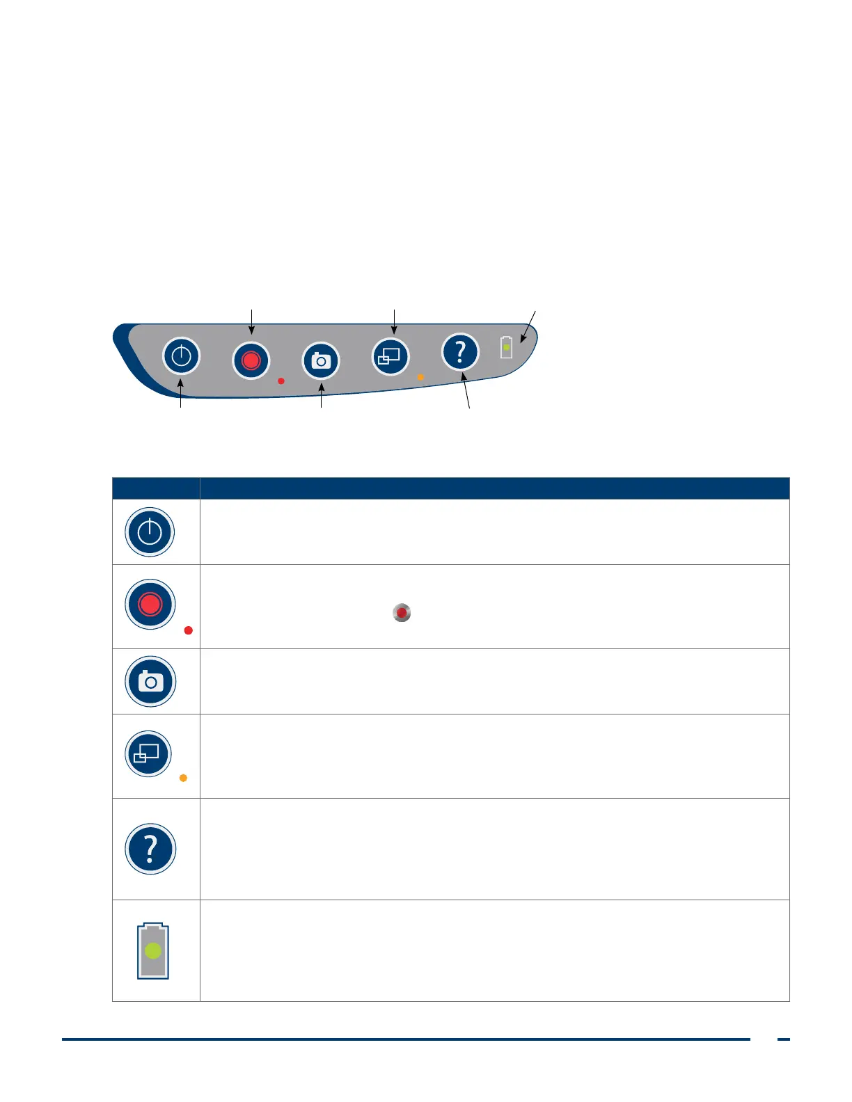 External Video: Press to display video on an external monitor. The yellow LED to the right