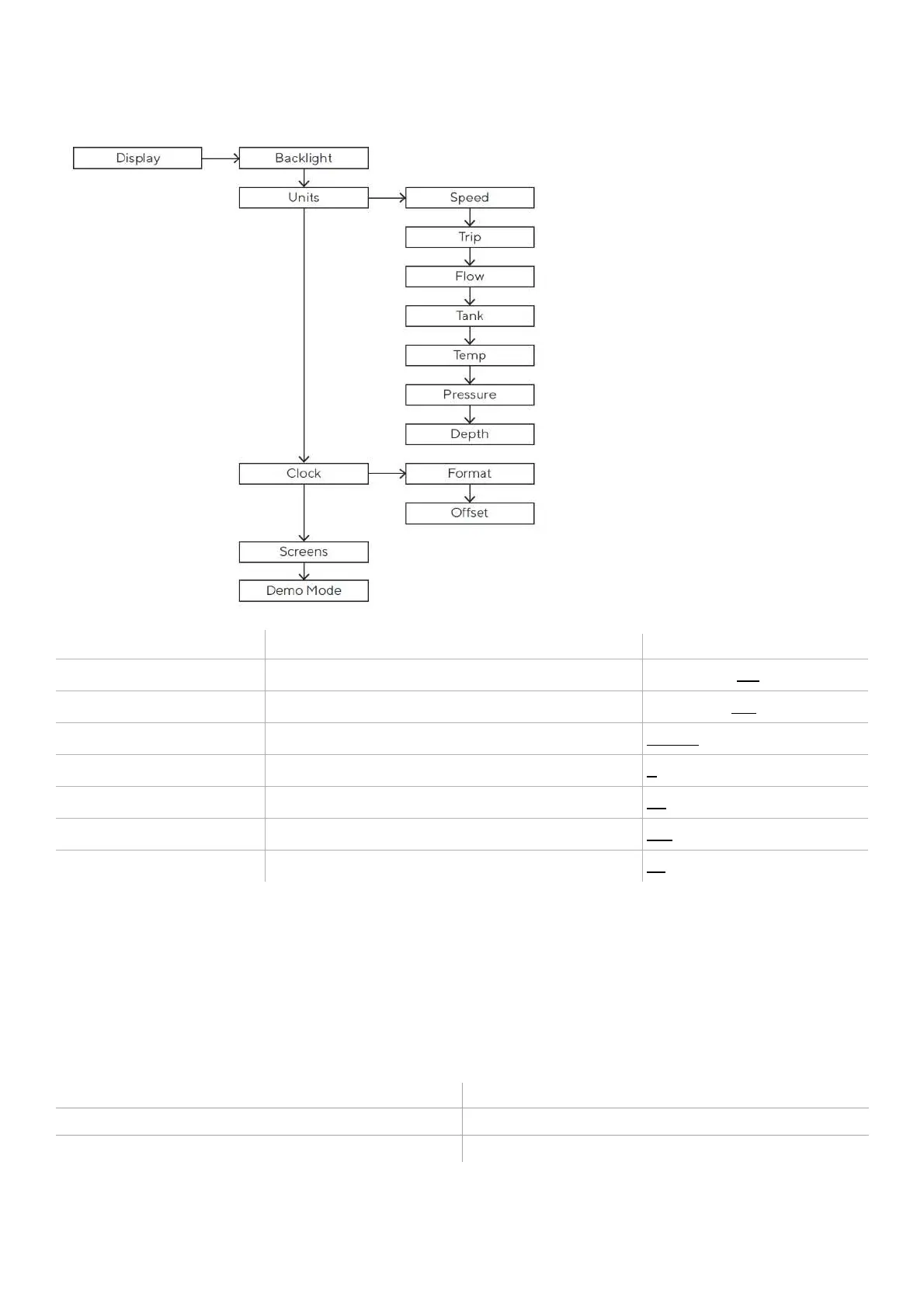 : Der unterstrichene Wert/Befehl ist der Standardwert.