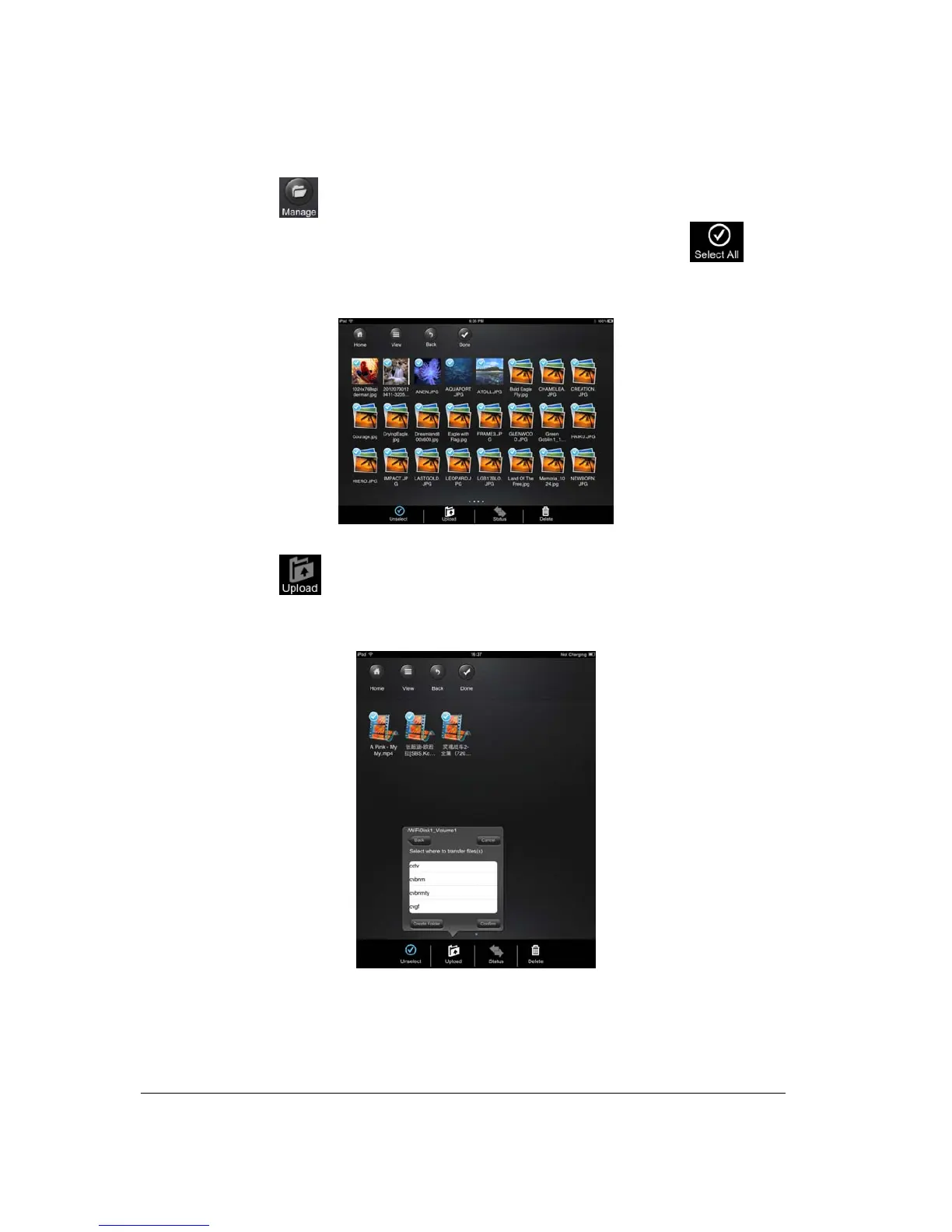 2. Use your index finger to select a single or multiple files or you may use the button to
