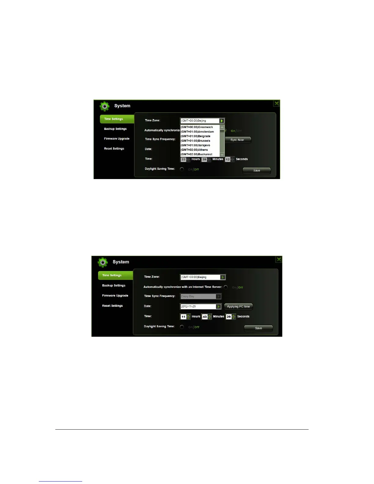the PC time will automatically adjust the time and date based on the PC time. See the image below.