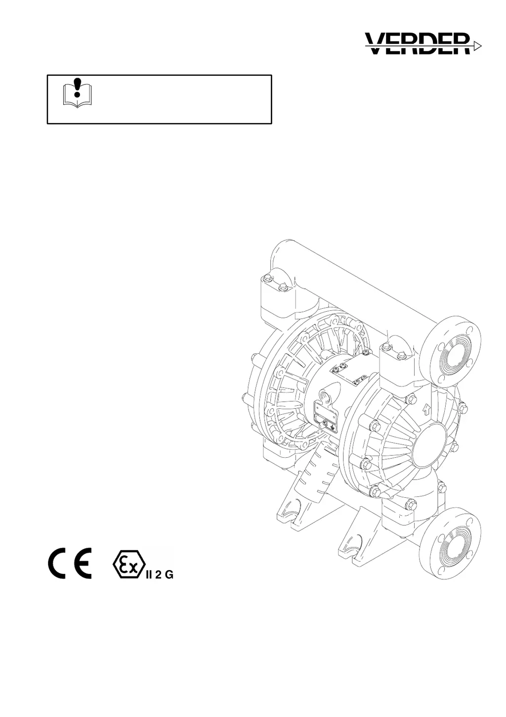 If you notice fluid in the exhaust air of your VERDER Water Pump, it could be due to a ruptured diaphragm, a loose diaphragm shaft bolt (107), or a damaged o-ring (108). Consider replacing the diaphragm, tightening or replacing the diaphragm shaft bolt, or replacing the o-ring.