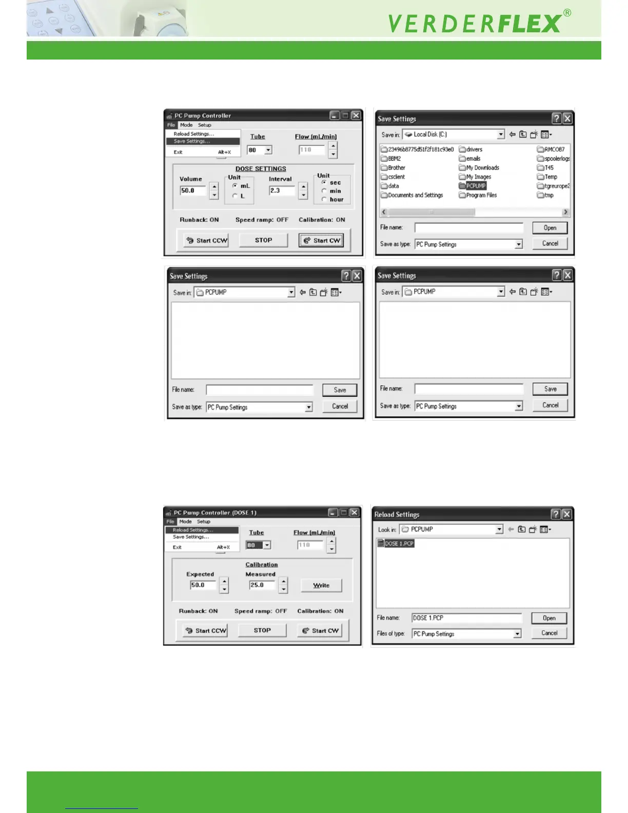 Verderflex Vantage 3000 P - Save Settings; Reload Settings