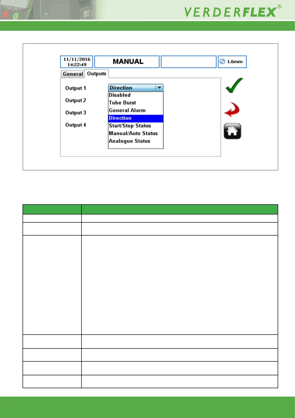 The selected output pin will be a logic 1 when the pump is set to run in a clockwise direction and