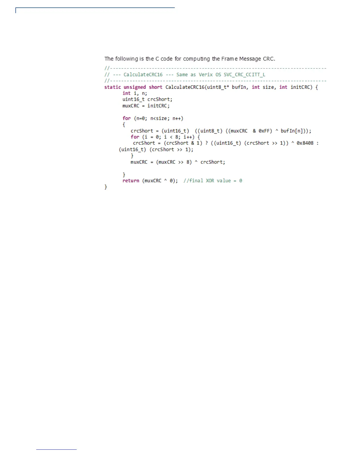 Example CRC Algorithm used in PMR-MUX2 protocol: