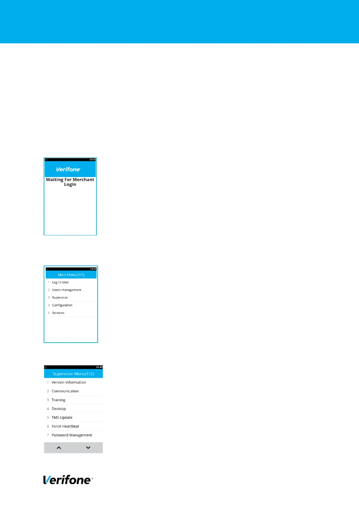 key on the keypad, our touch the Blue Verifone logo banner.