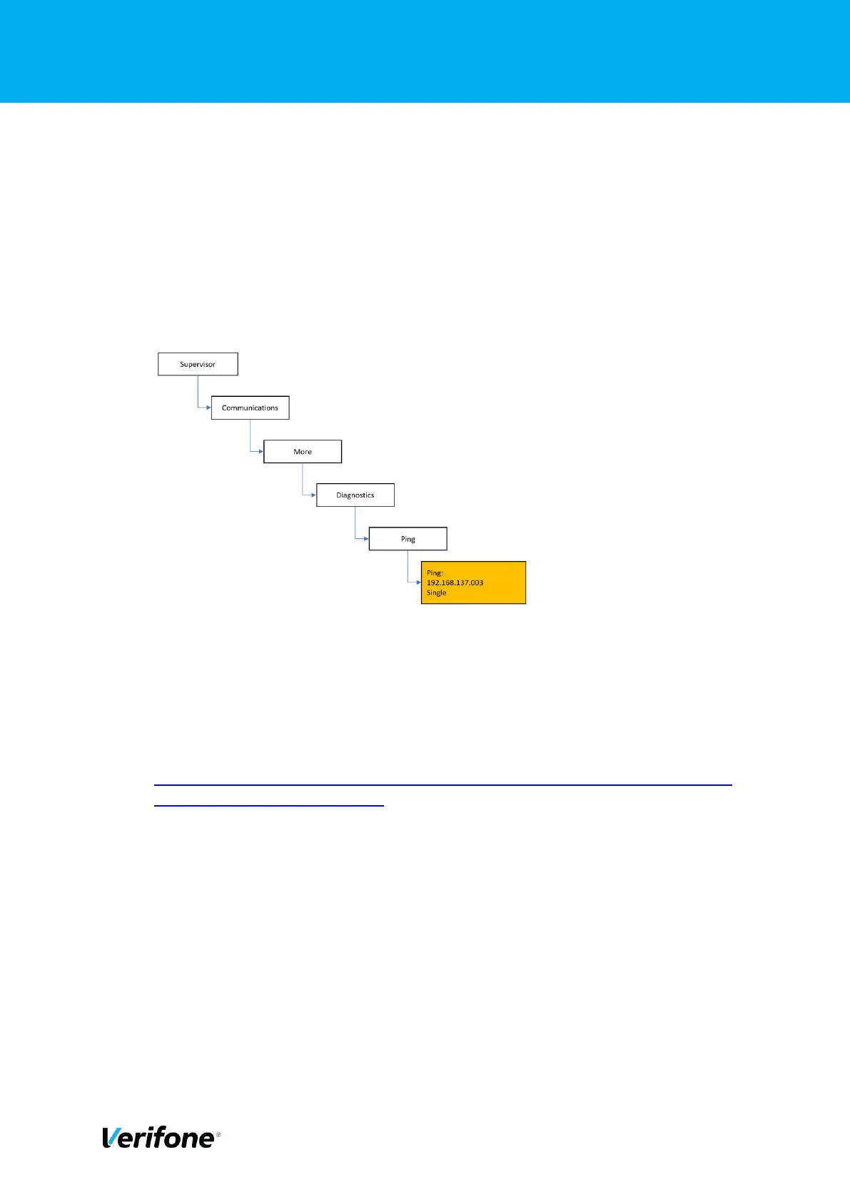 To carry out a ping from the P400+, use the navigate the menu as follows. You will