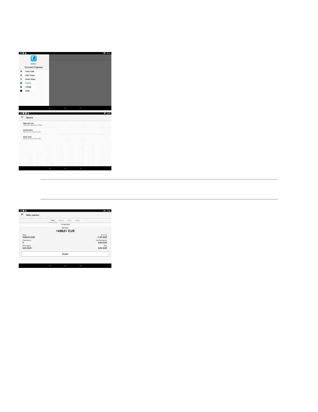 overview, current totals and reset totals. In order to access the reports,