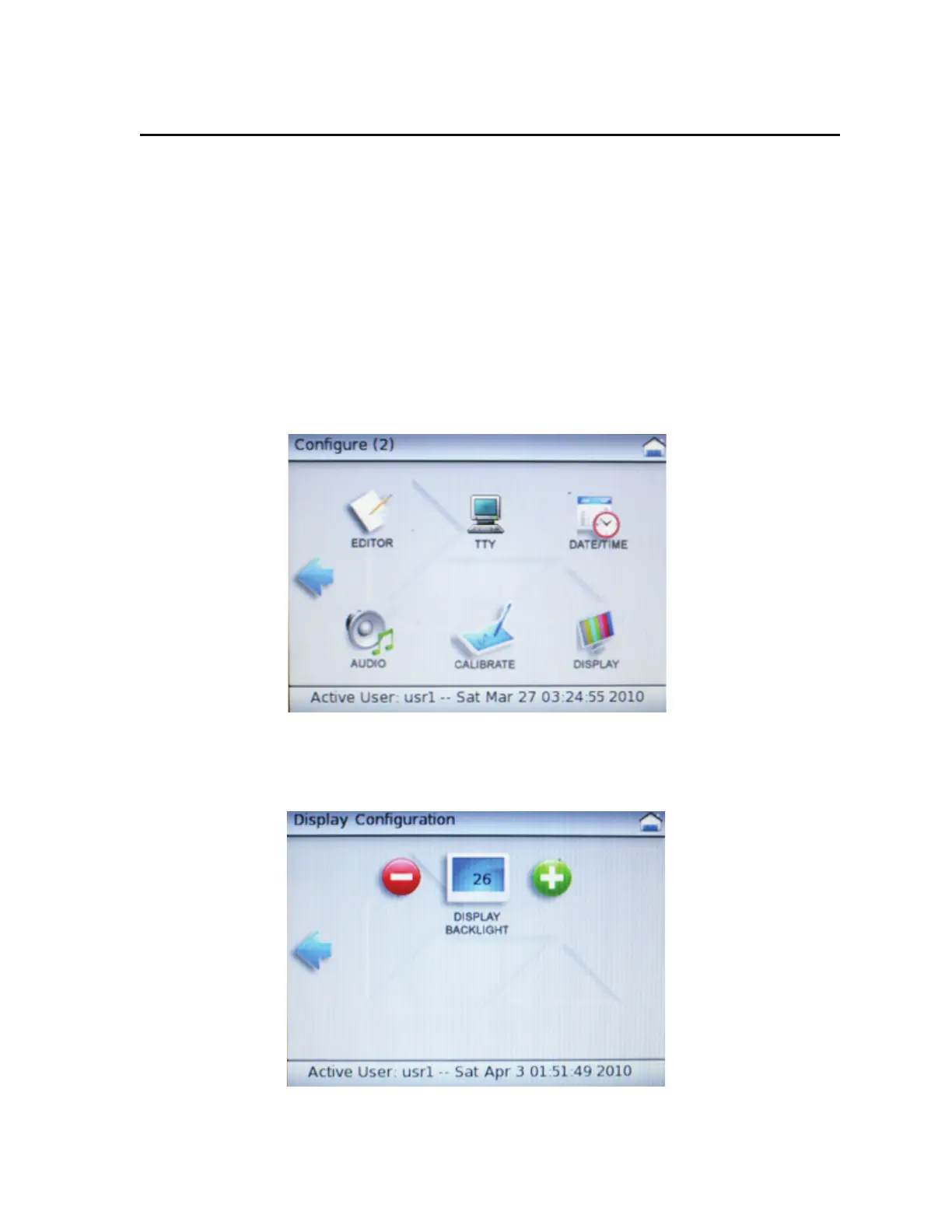 – Select the DISPLAY icon to display the Display Configuration screen. Select the