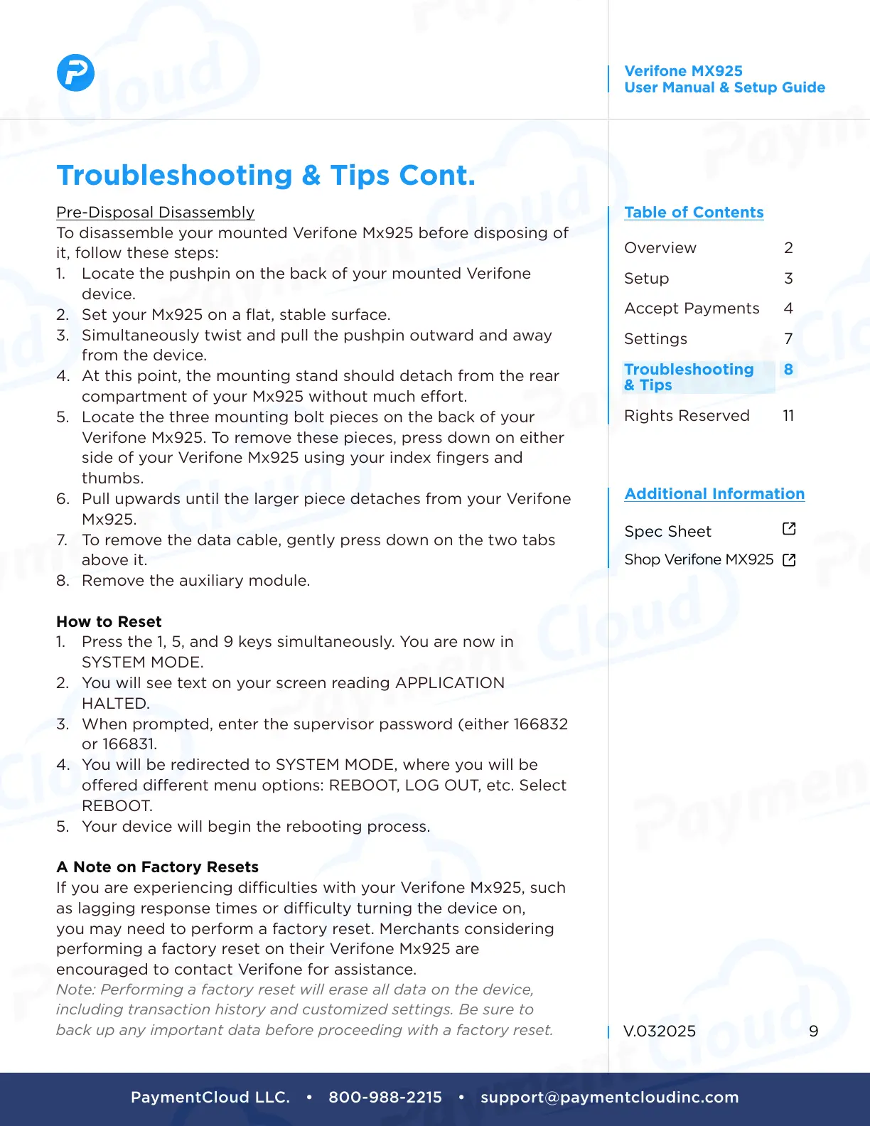 performing a factory reset on their Verifone Mx925 are