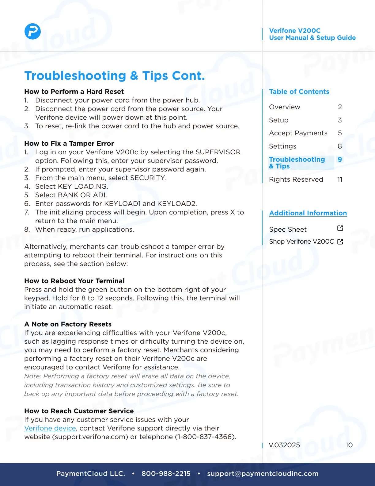 website (support.verifone.com) or telephone (1-800-837-4366).