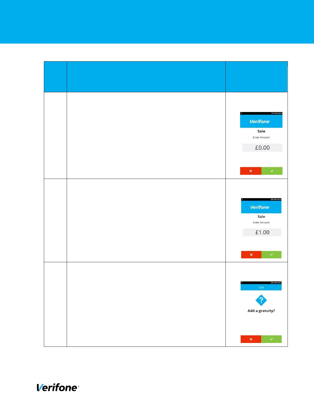 Option to add the gratuity, Press “Green” to add gratuity or