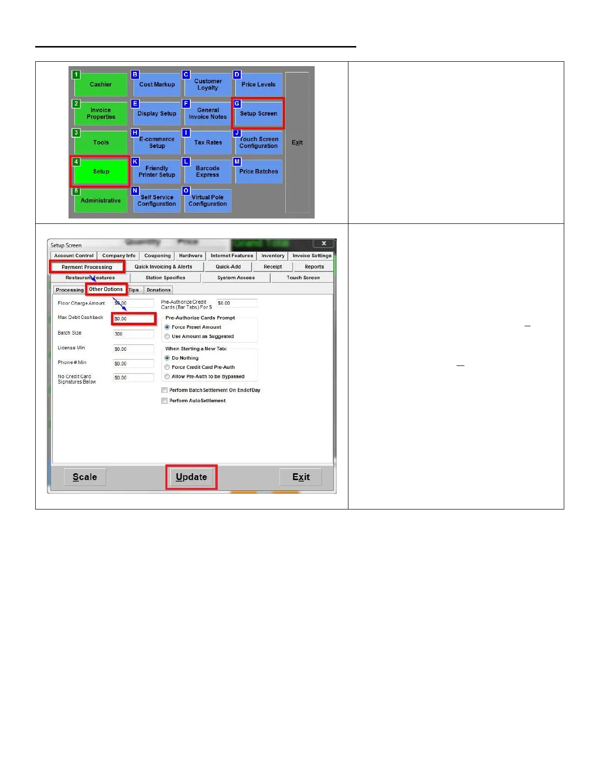 Options; in the Max Debit Cashback