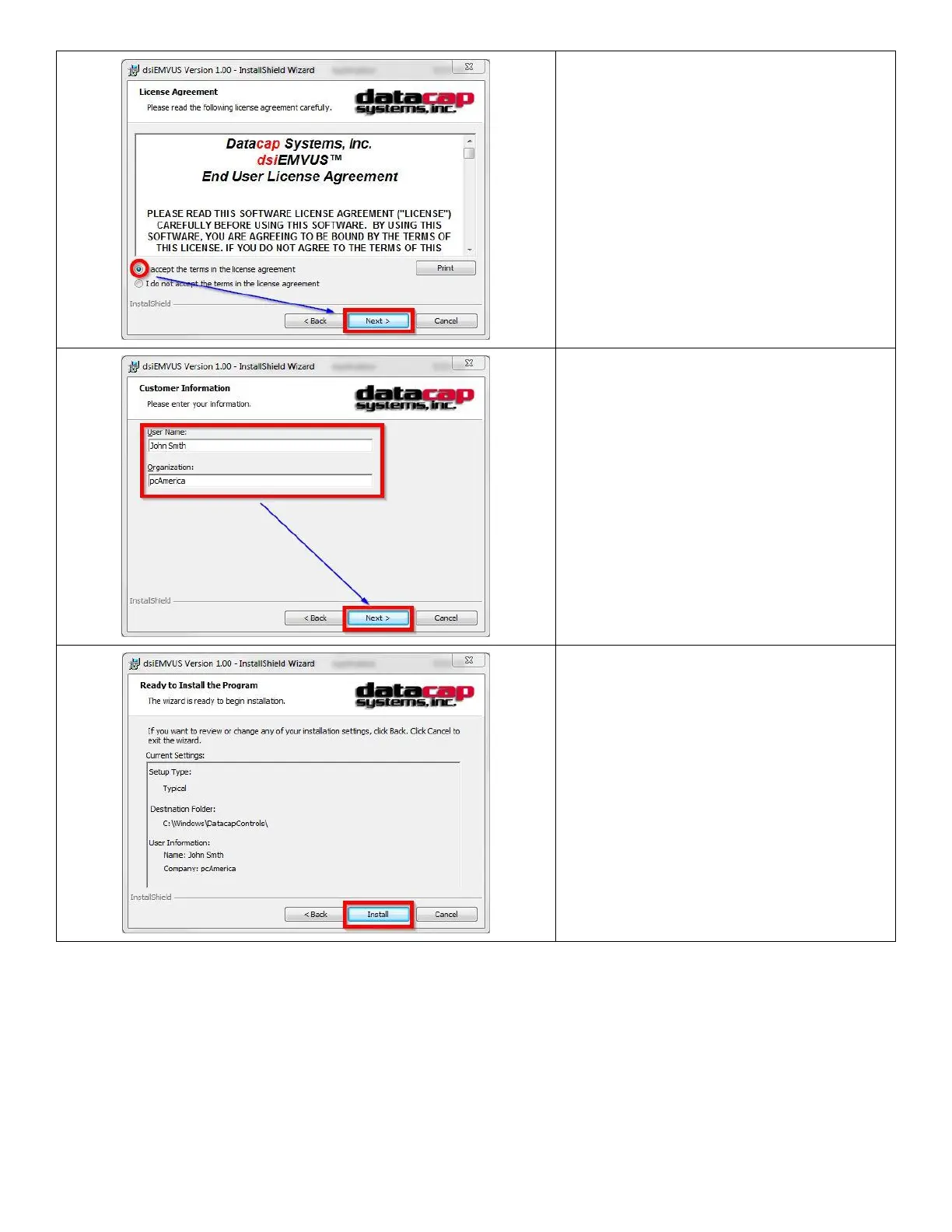VeriFone VX 805 - Accept dsiEMVUS License; Enter Installation Information; Initiate dsiEMVUS Installation
