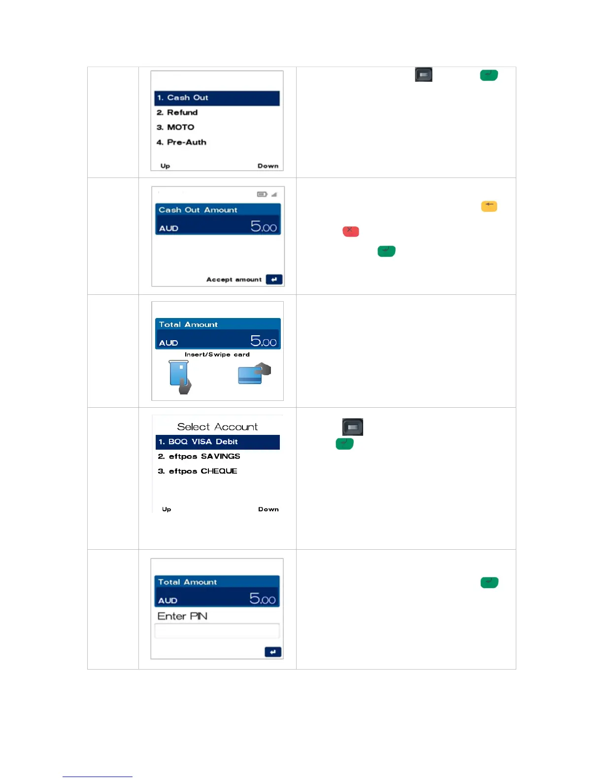 Key in the Cash Out amount, i.e. 500 = $5.00