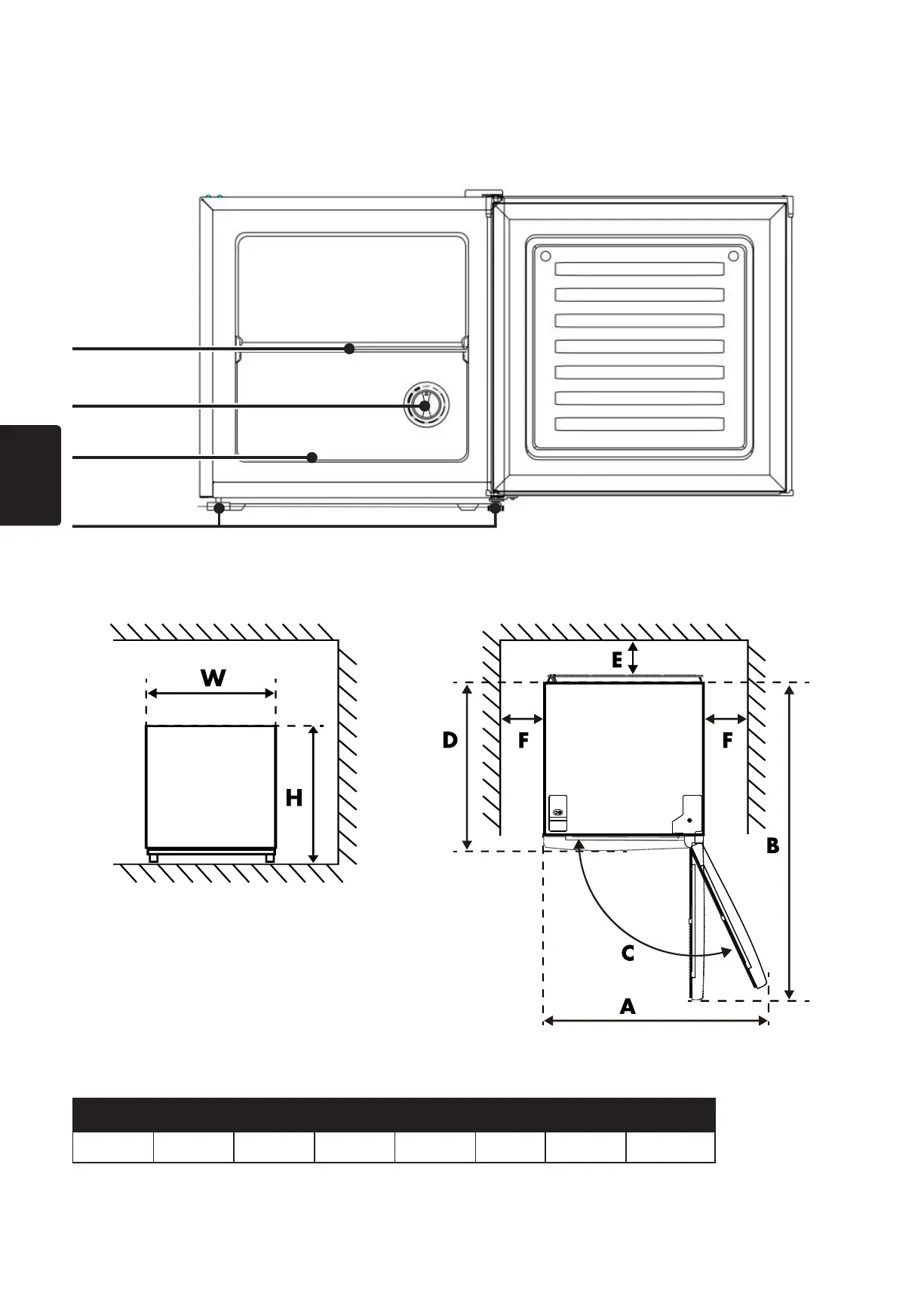 W D H A B C(°) E F