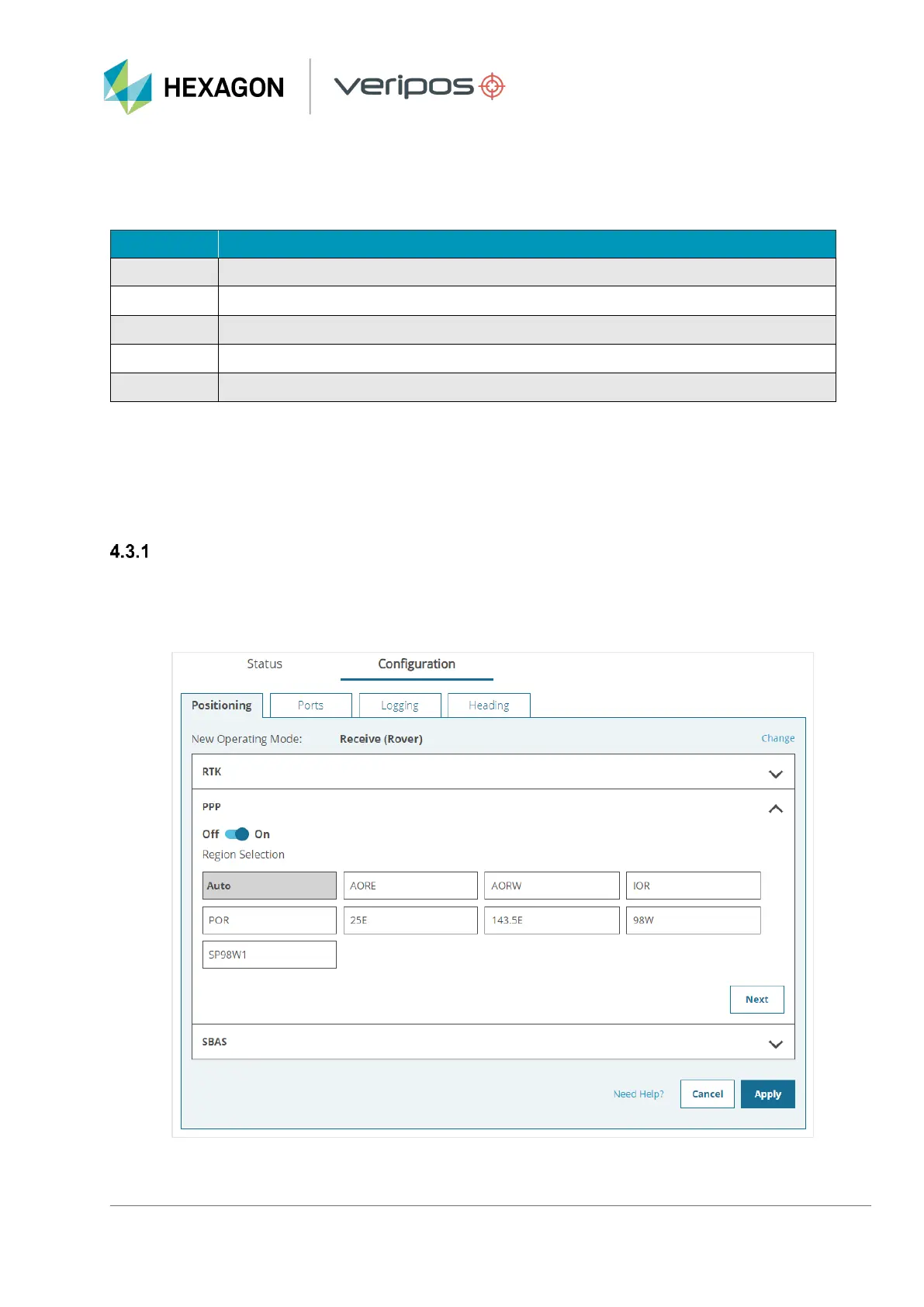 To select Auto beam (or a single beam if required) navigate to Configuration > Positioning and click Receive