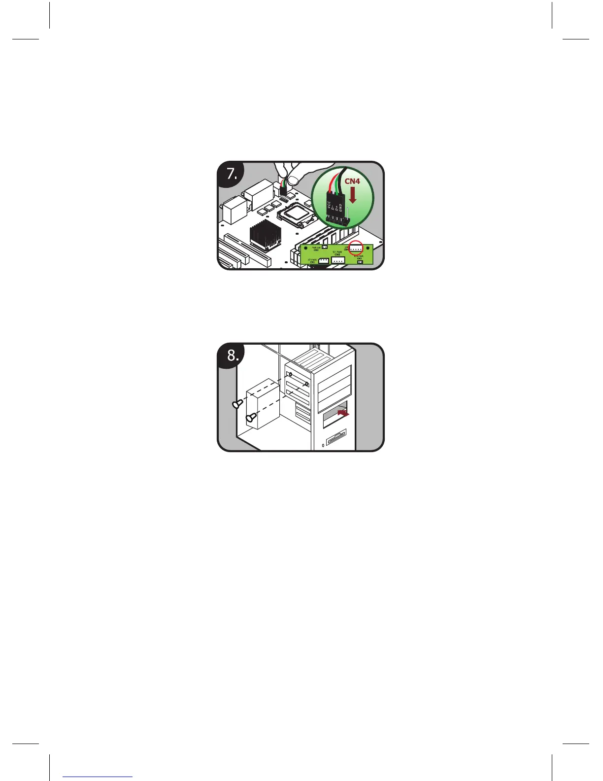 7. CN4のUSBケーブルをマザーボードのUSBピンヘッダー、もしく