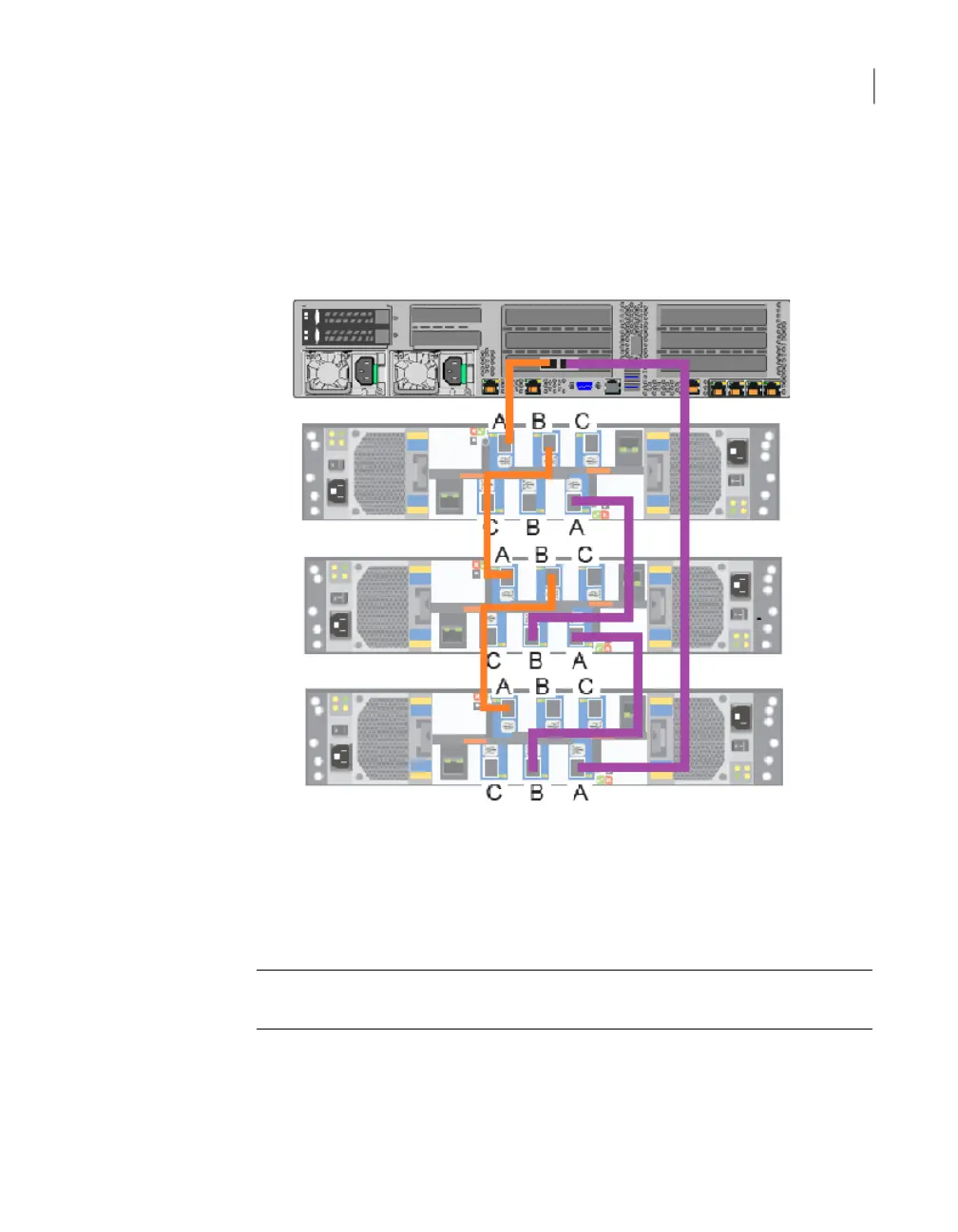Connect a SAS-3 cable to port B of the bottom I/O module in the second shelf.