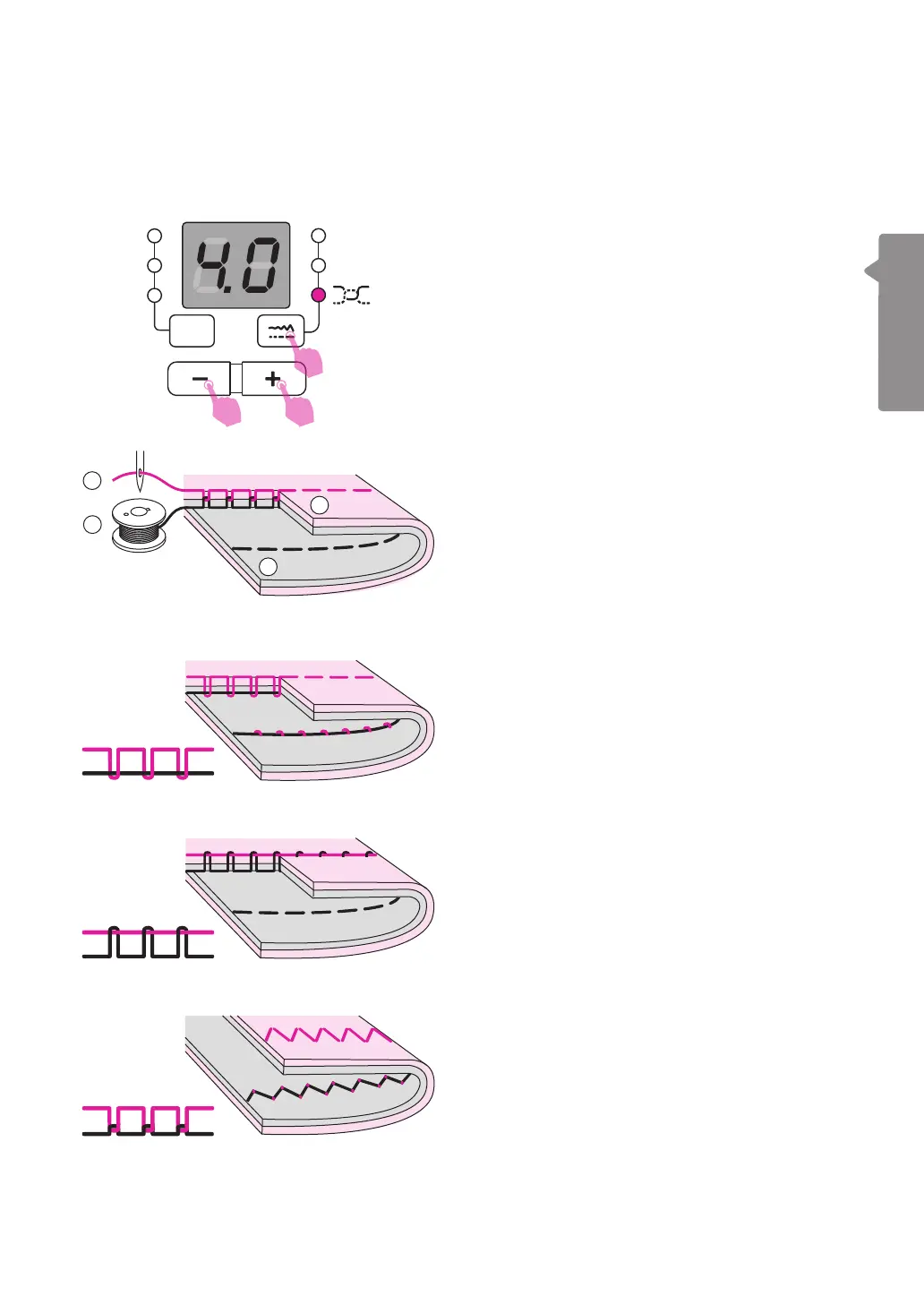 sewing. To reduce the tension, press the "–"