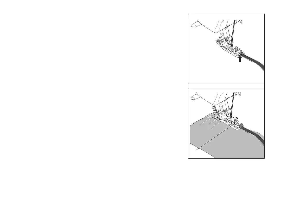 auf das Gummiband aus, so dass Sie die Elastizität beim Nähen kontrollieren können.