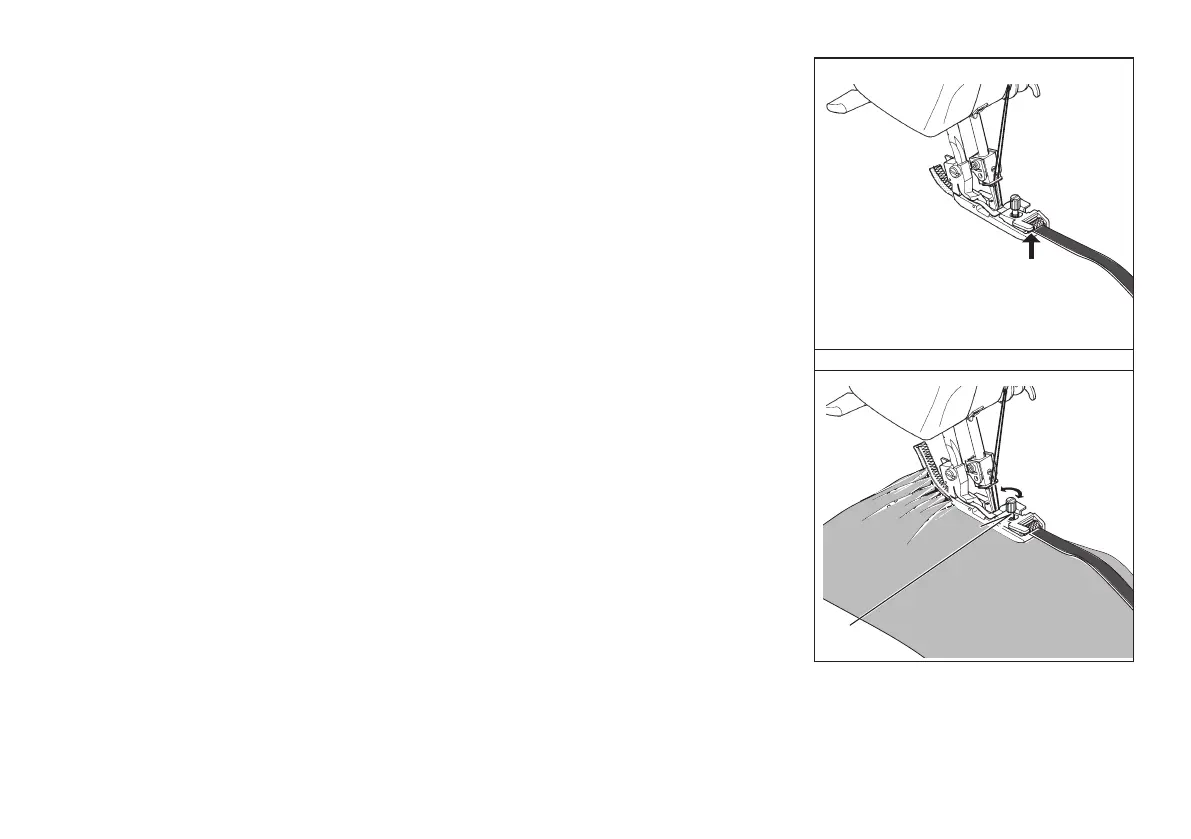 and the lower support bar as illustrated, until the edge of elastic reaches the feed dog