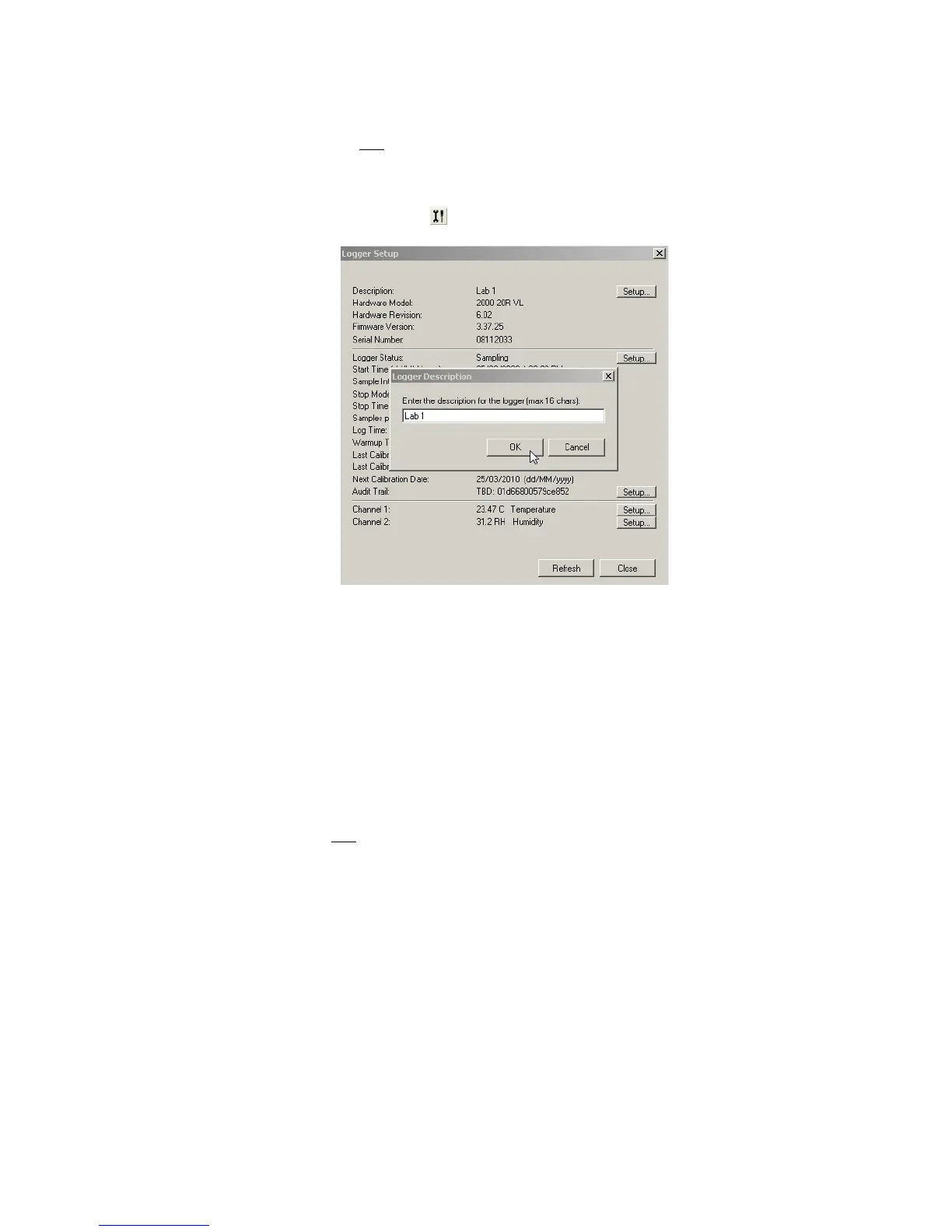 2. In the box provided, type a description of the data logger, using up to six-