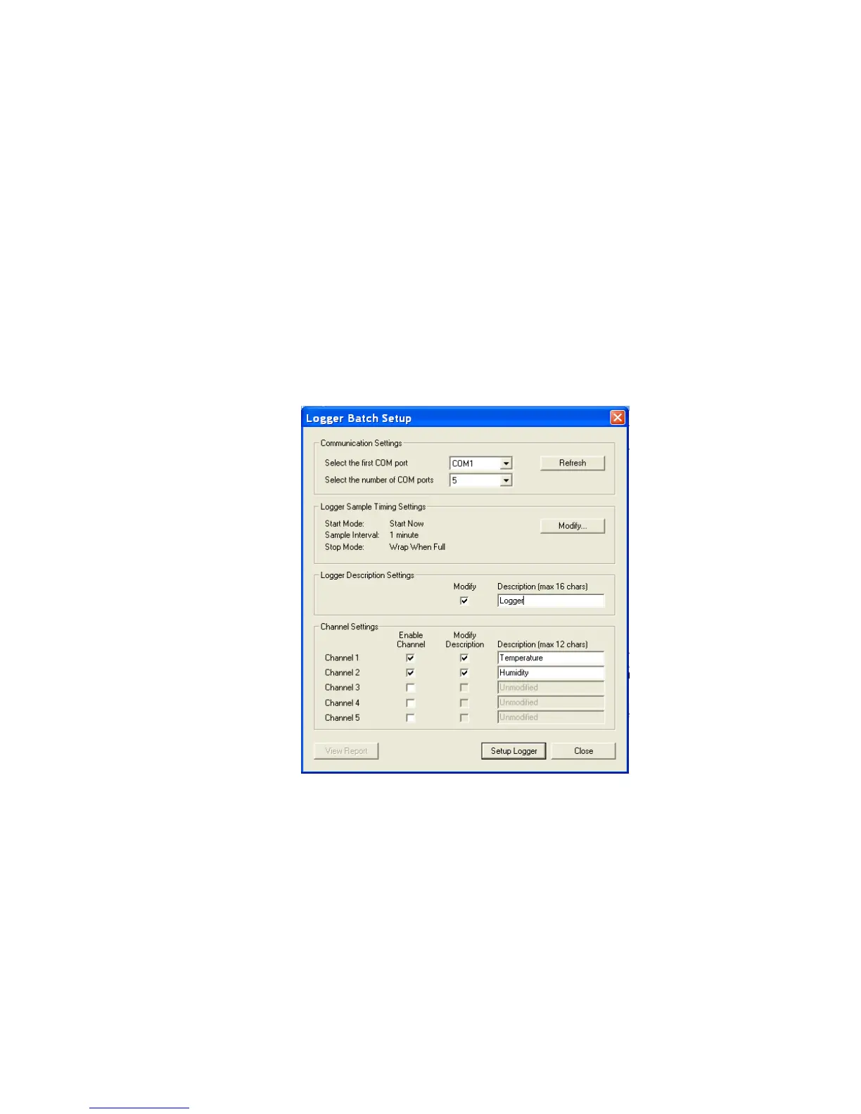 of your batch setup. (Example: If setting up loggers on COM ports 2, 4,