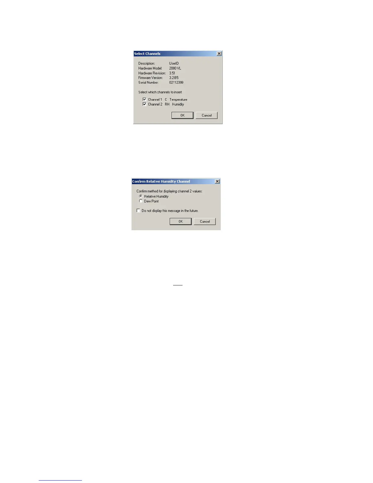 Confirm Relative Humidity Channel window opens, prompting you to