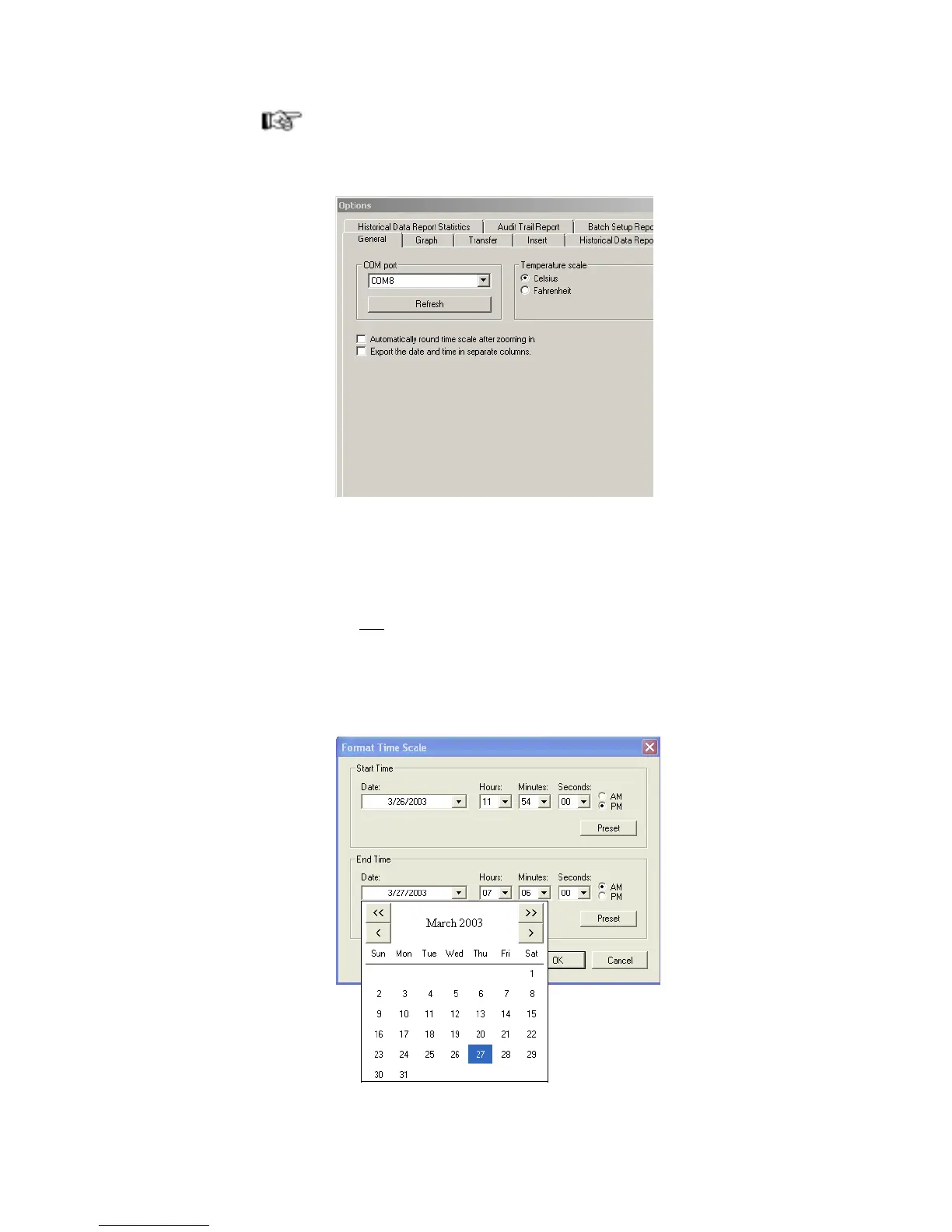 • Place the cursor over the date and time at the bottom of the graph, and