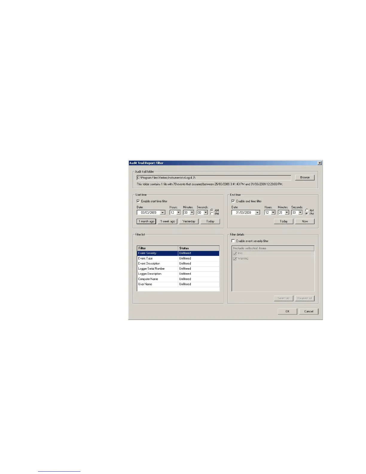 2. The Audit Trail Report Filter window appears. From this window, you can