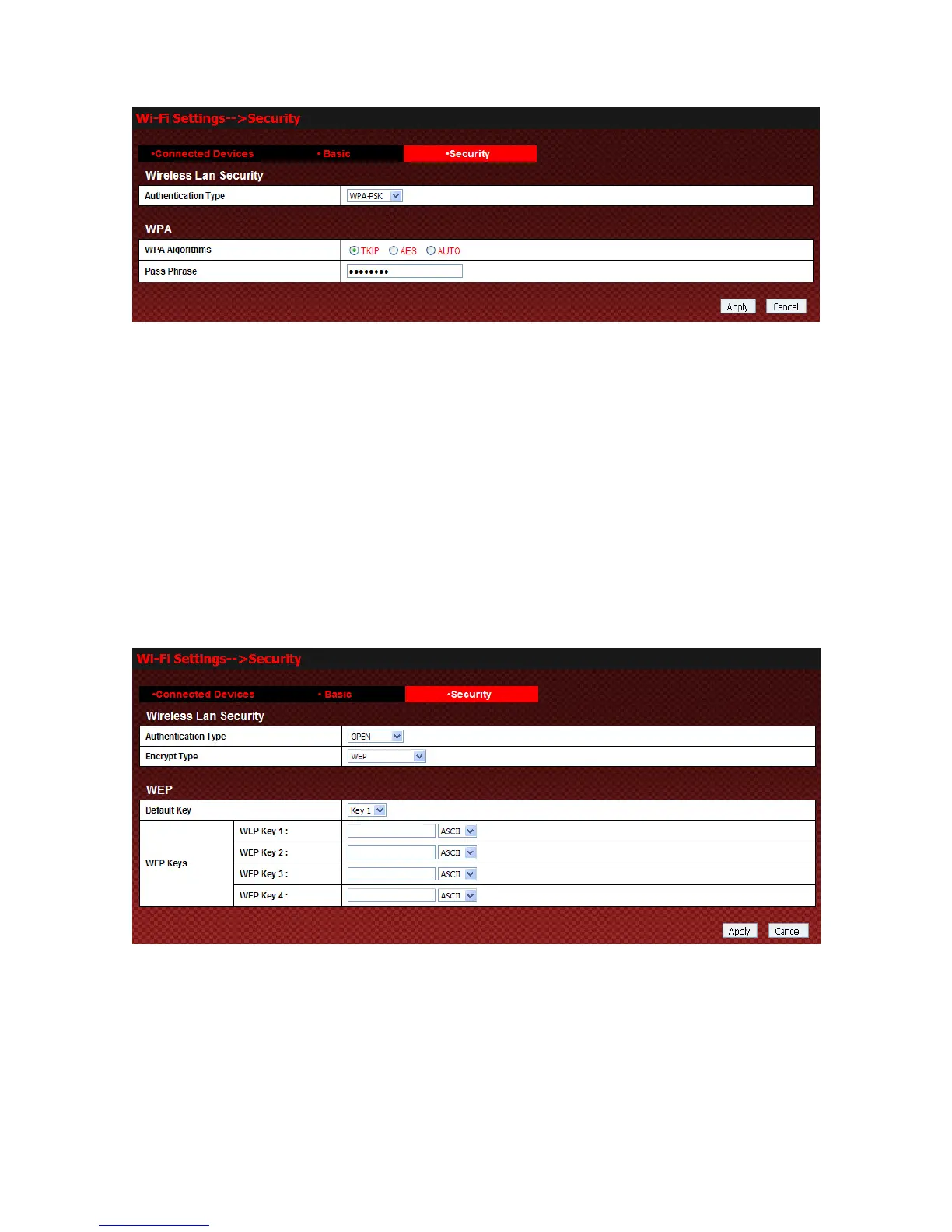 z WEP Keys: At most four keys can be set in the blank. Choose the primary key index. The primary key is