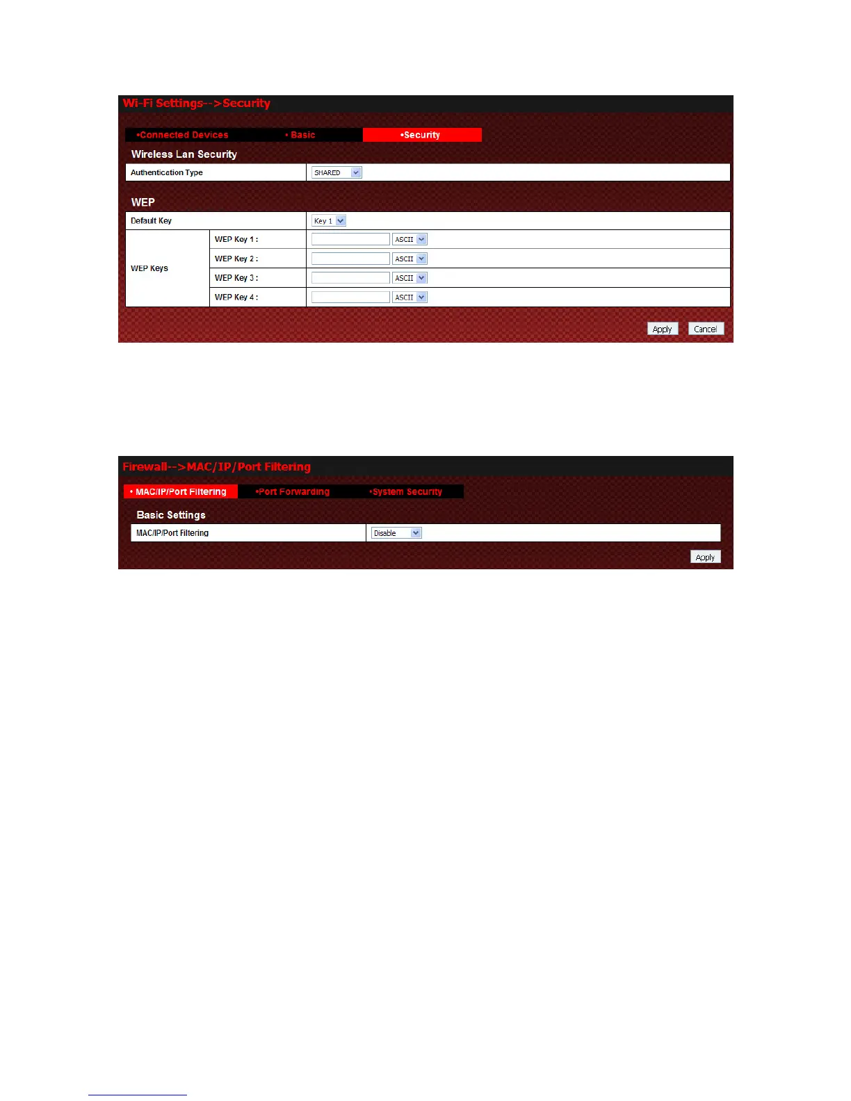 Select FirewallMAC/IP/Port Filtering to access: