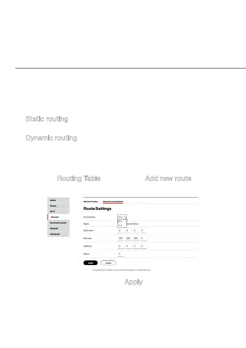 • Static routing – specifies a fixed routing path to neighboring
