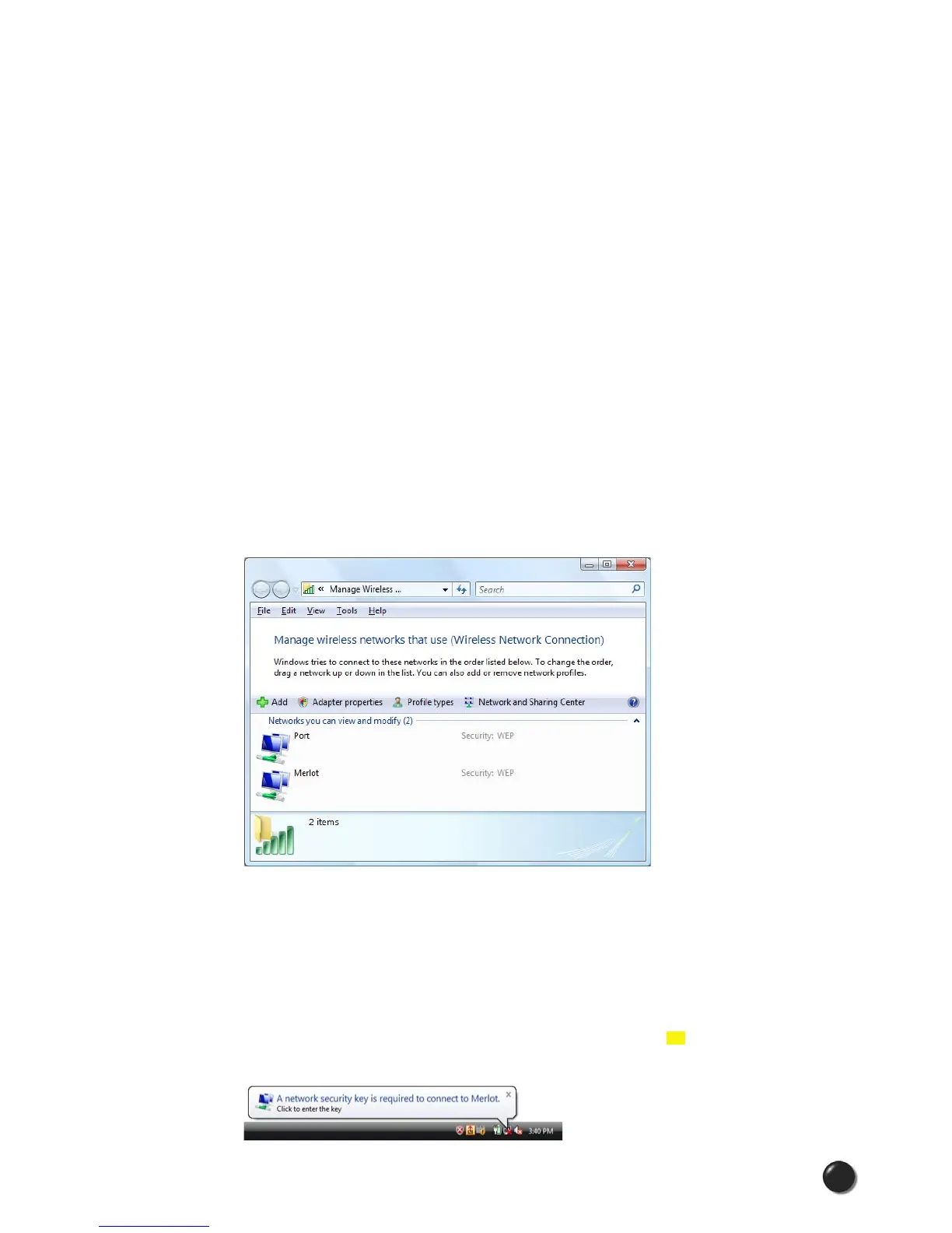Manage Wireless Networks: Press this button to launch the following native