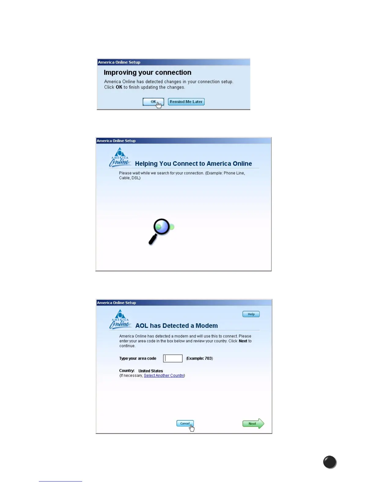 STEP 4: AOL will attempt to detect how it might be able to connect.