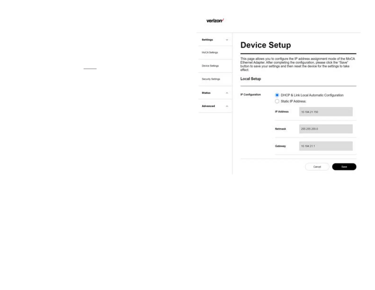 mode of the MoCA Ethernet Adapter. The IP Address is not