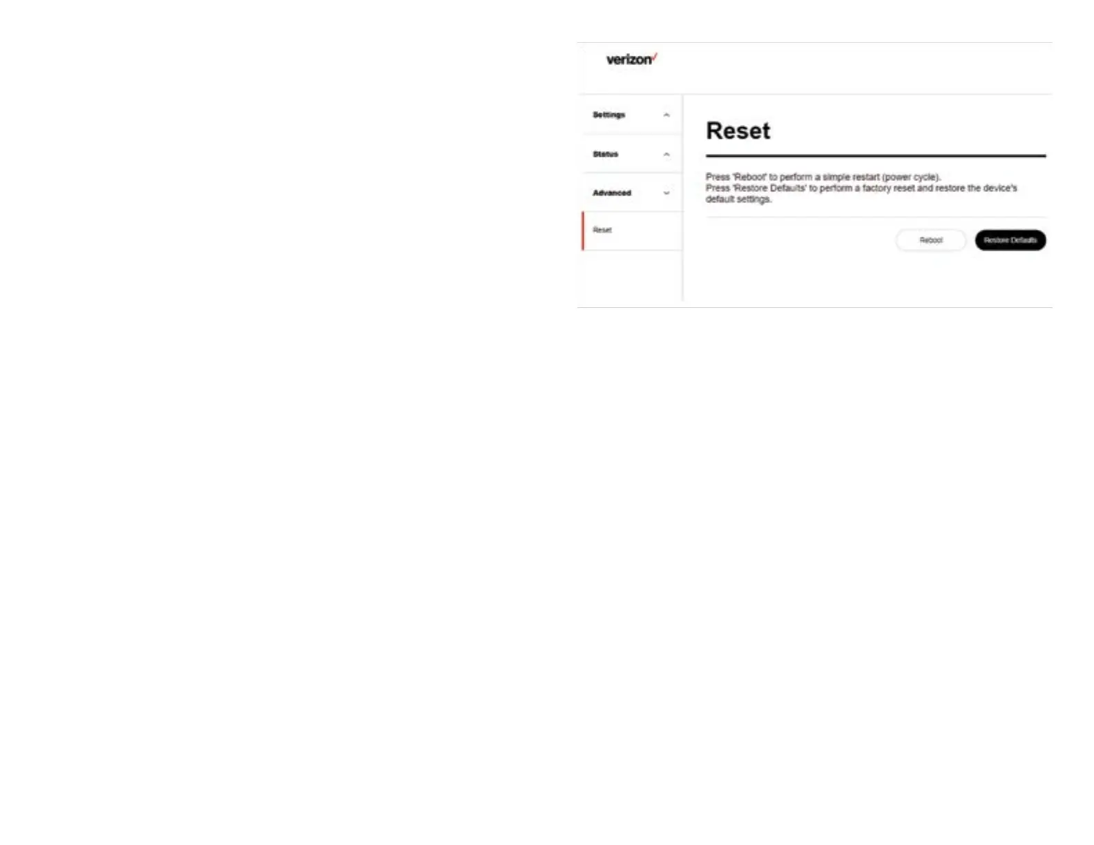 to factory defaults at this page. The buttons Reboot or Restore