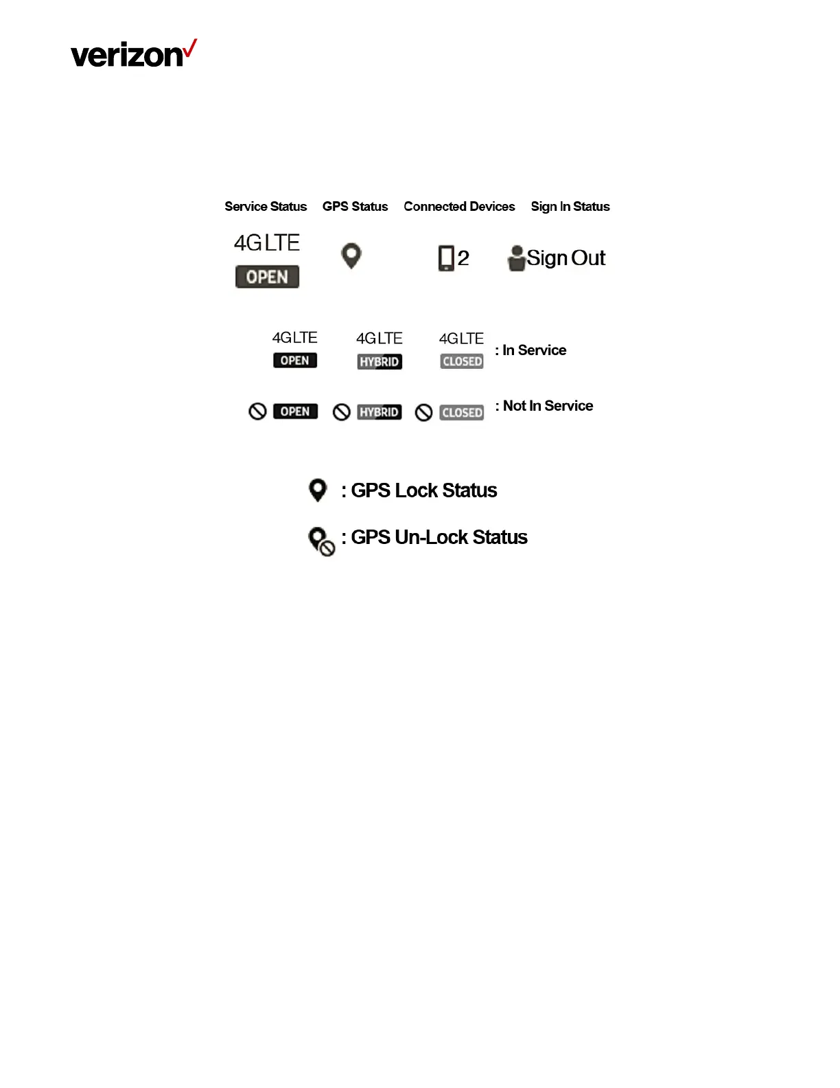 Icons in the top right corner of the Home screen provide a quick display of 4G Service Status, GPS Status, Connected Devices