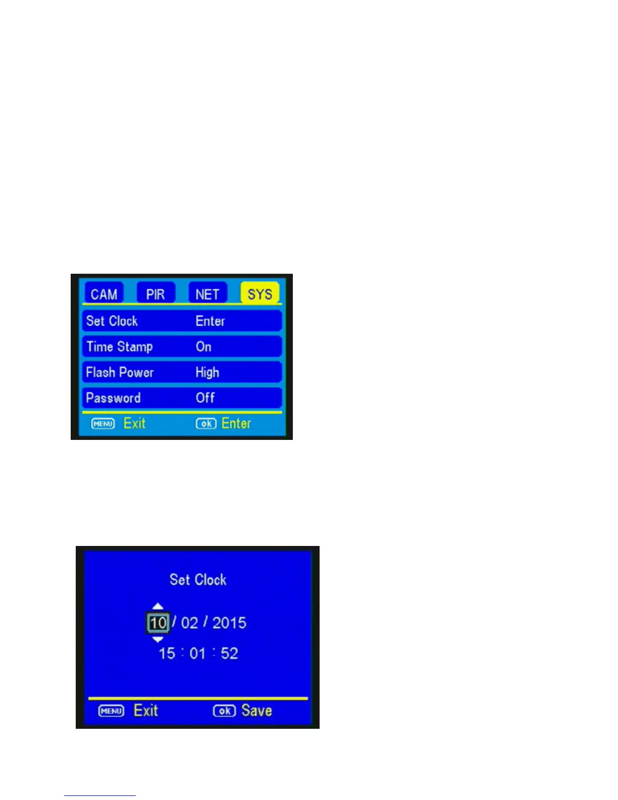SETTING THE CLOCK: Scroll over to the SYS tab