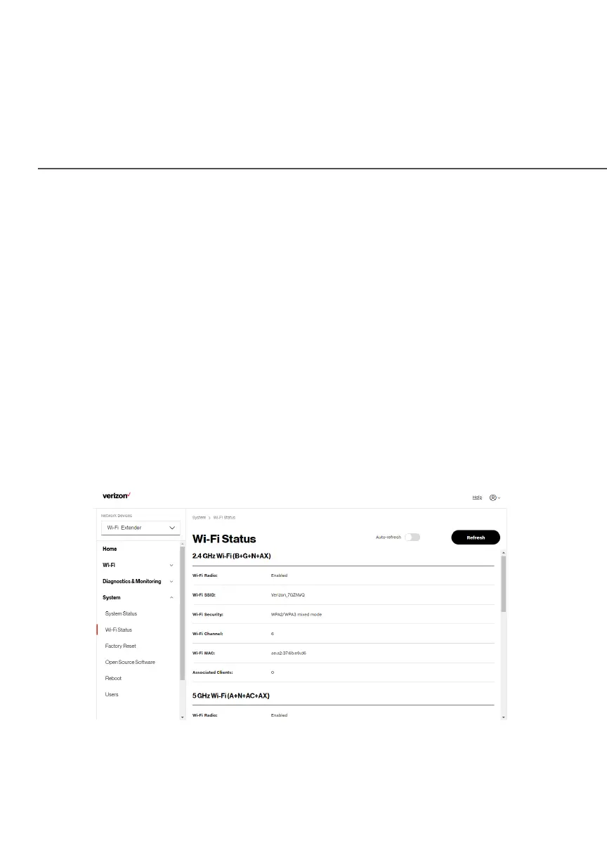 Use the Wi-Fi status feature to view the status for either 2.4 GHz,