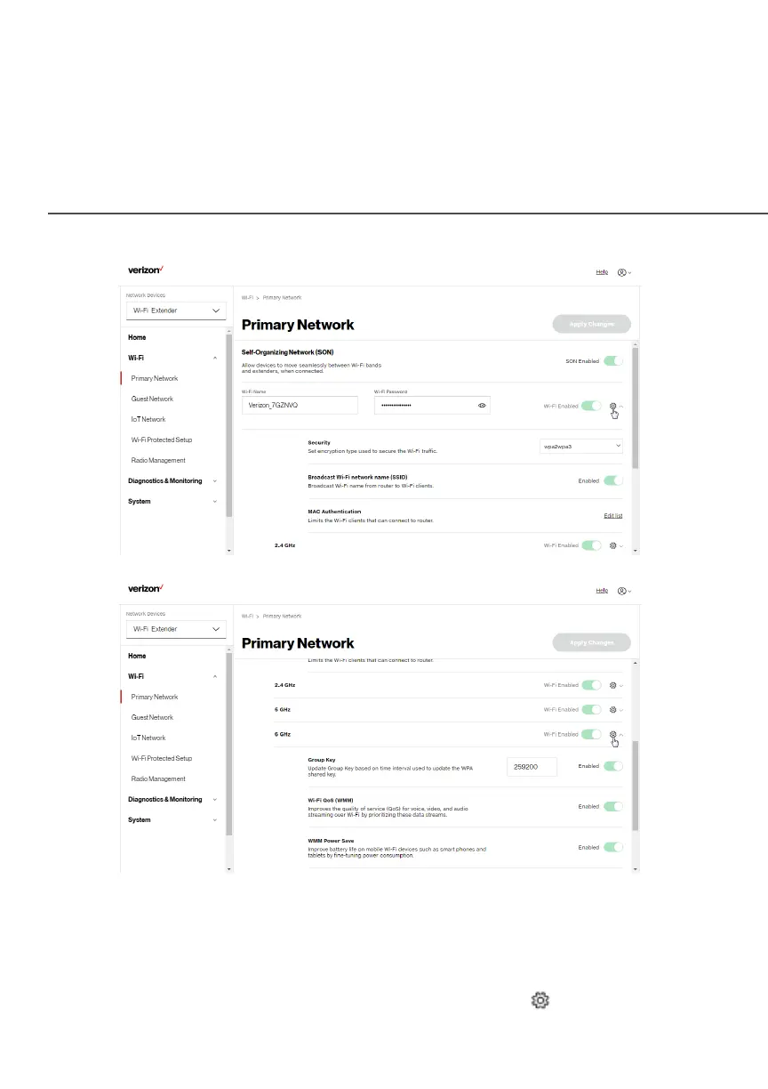 2. To view the Wi-Fi security, click the setup button.