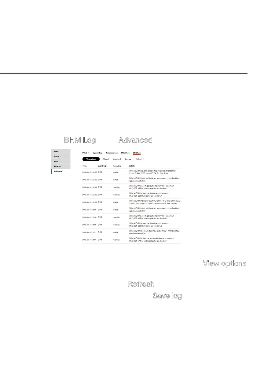 To view the backhaul modes log: