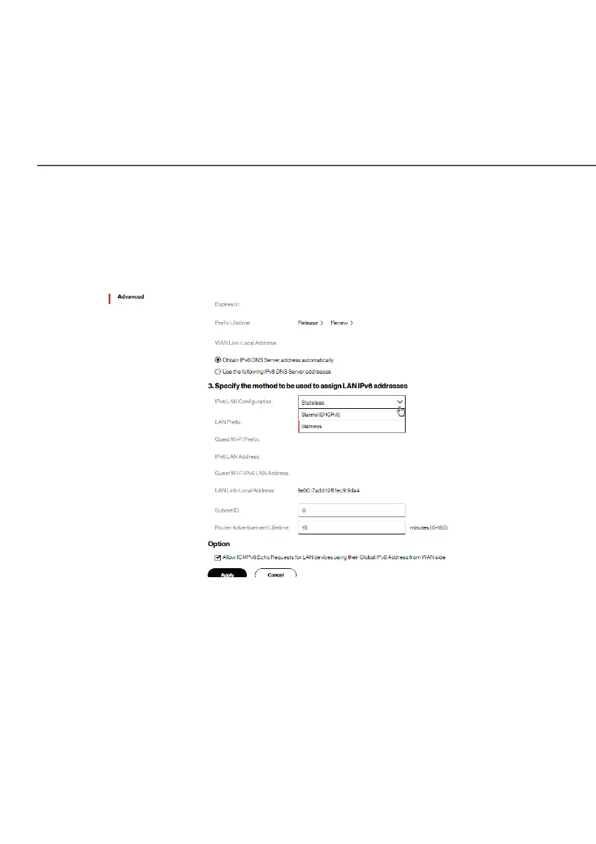 • IPv6 LAN ConfigurationIPv6 LAN Configuration (select Stateless from the