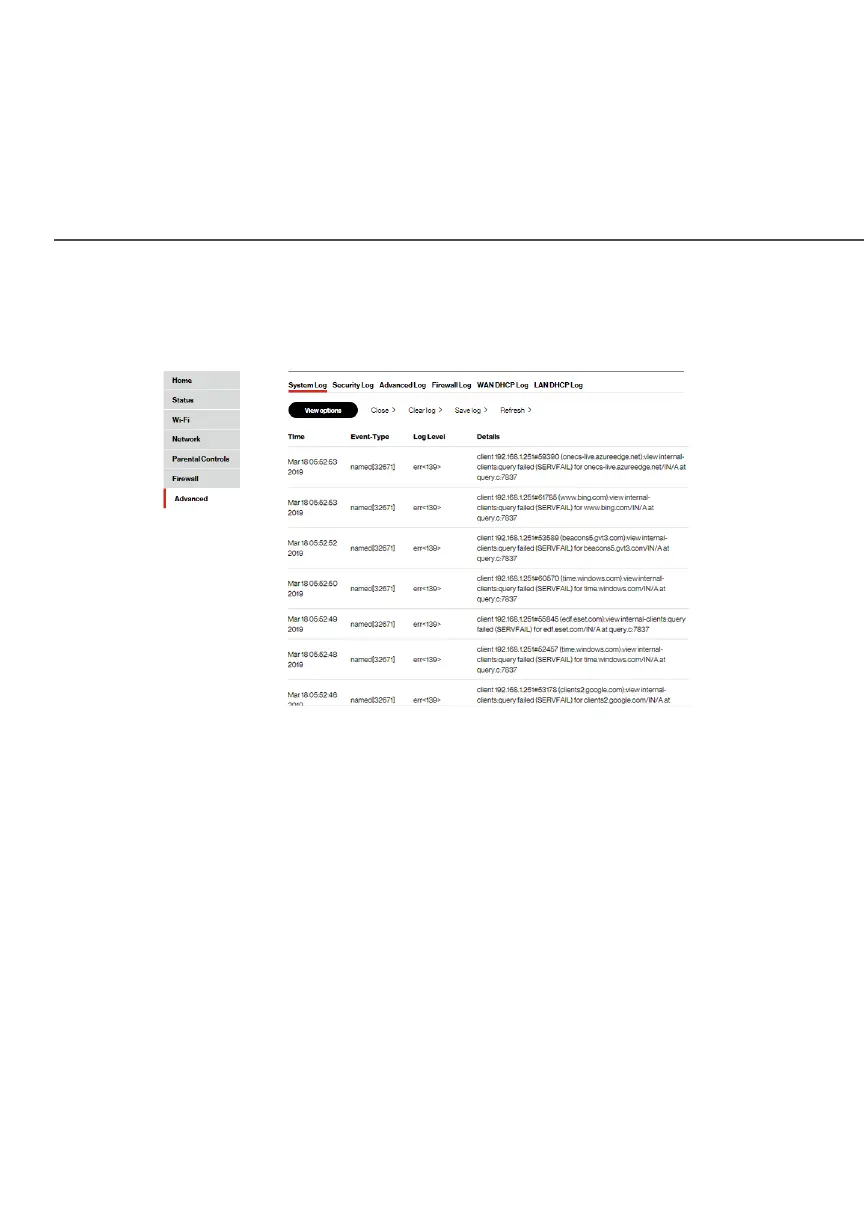 WAN DHCP Log, etc., click the appropriate link in the menu
