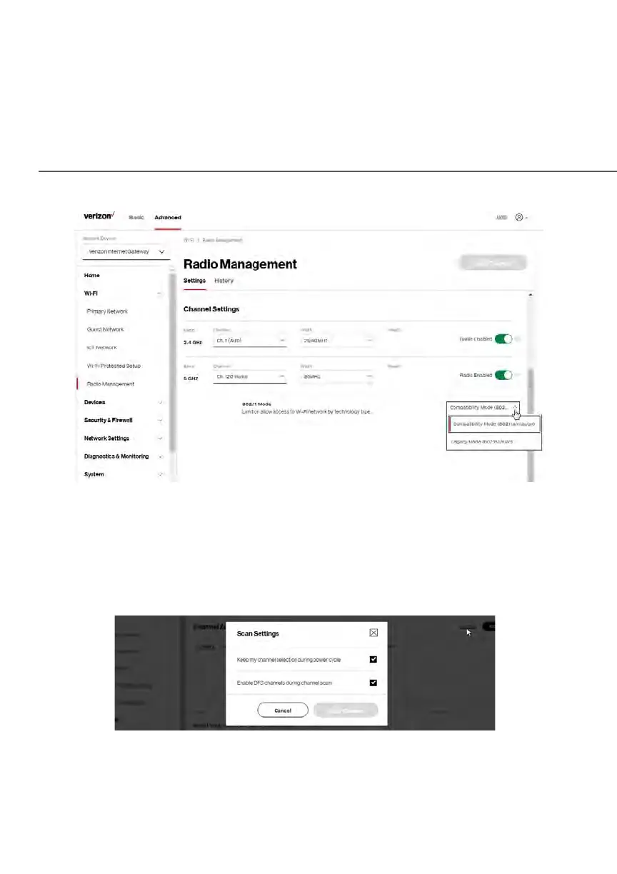 1. From the Advanced menu, select Wi-Fi and then click Radio