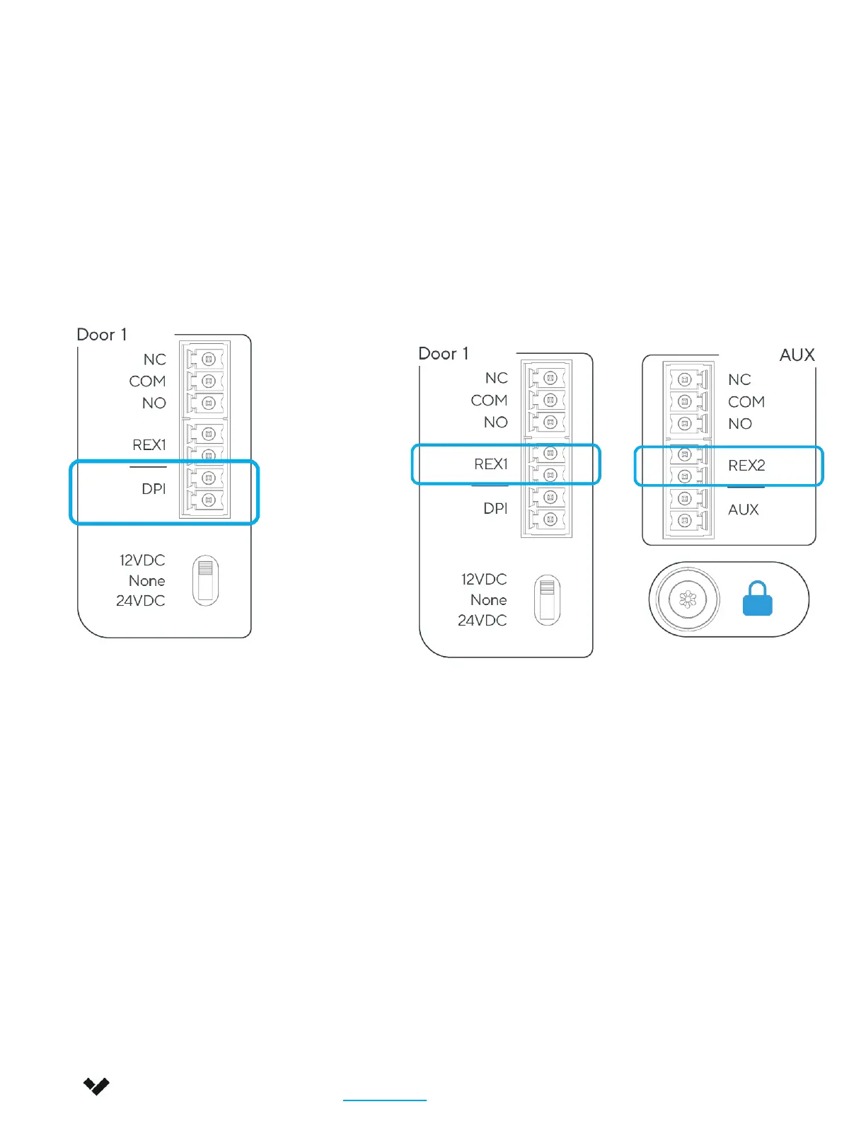 Both the Door Position Indicator (DPI) and the Request-to-Exit (REX) inputs are dry contacts.